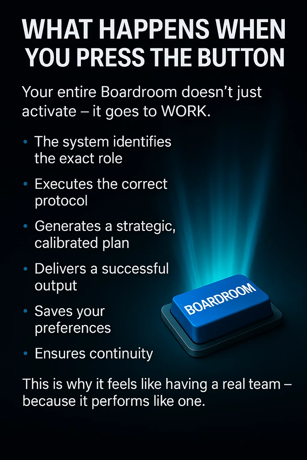 • Skip the memorization — just describe what you need and the right board member will activate